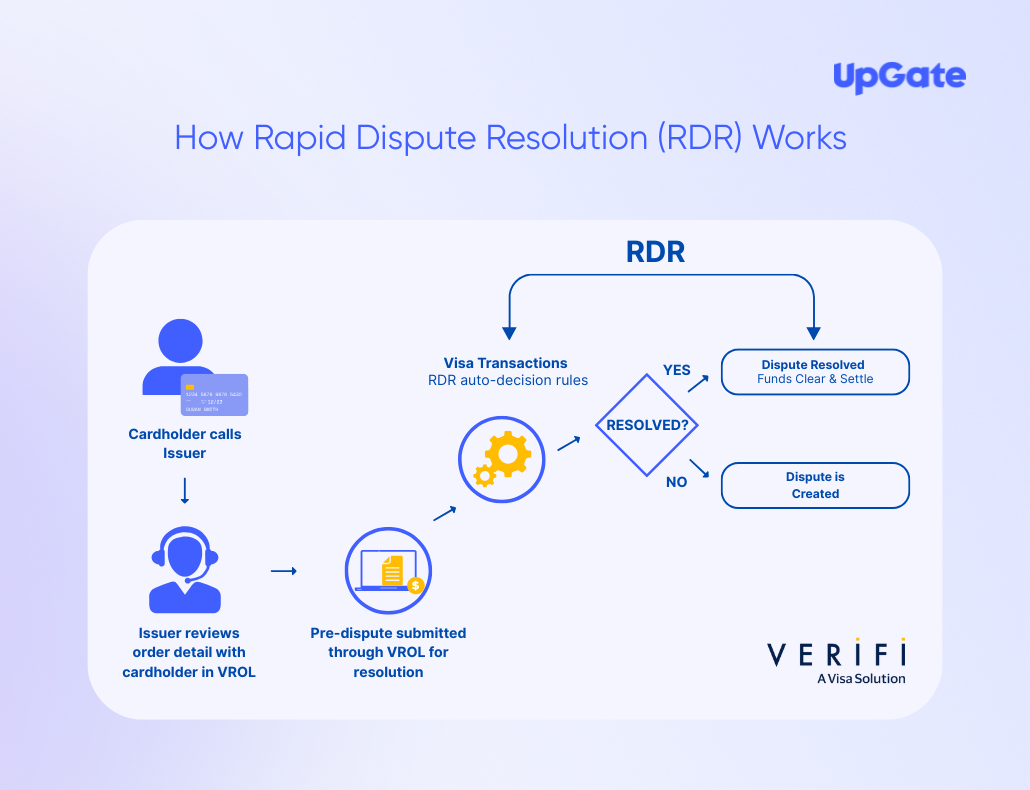 At its core, RDR is a next-generation technology developed in partnership with Verifi and built into Visa Resolve Online (VROL) that helps merchants resolve disputes at the pre-dispute stage, meaning before they escalate into full chargebacks. (Chargebacks911)