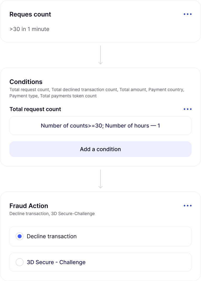 All fraud rules, alerts, and actions are evaluated centrally — ensuring predictable protection and eliminating gaps caused by processor-level logic